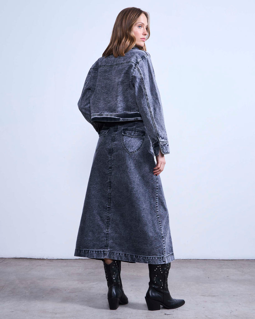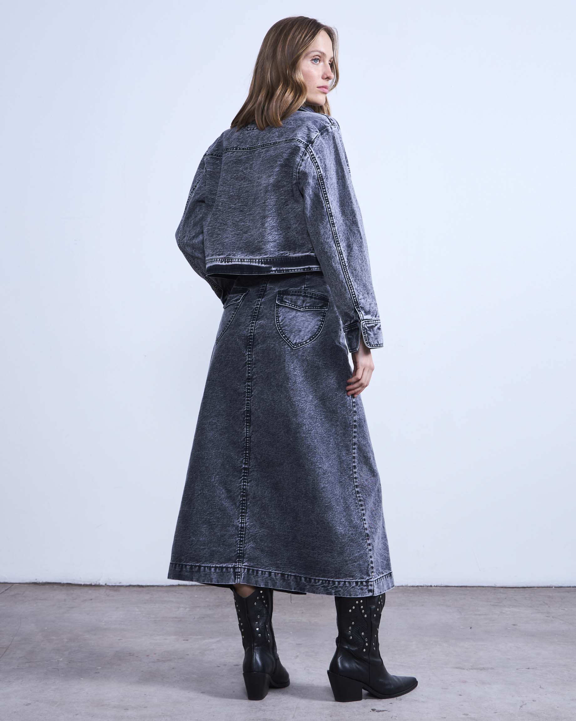 La chaqueta perfecta para completar tu look denim. Confeccionada en denim gris lavado, tiene un corte cropped y estructura relajada que aporta un aire moderno y versátil.