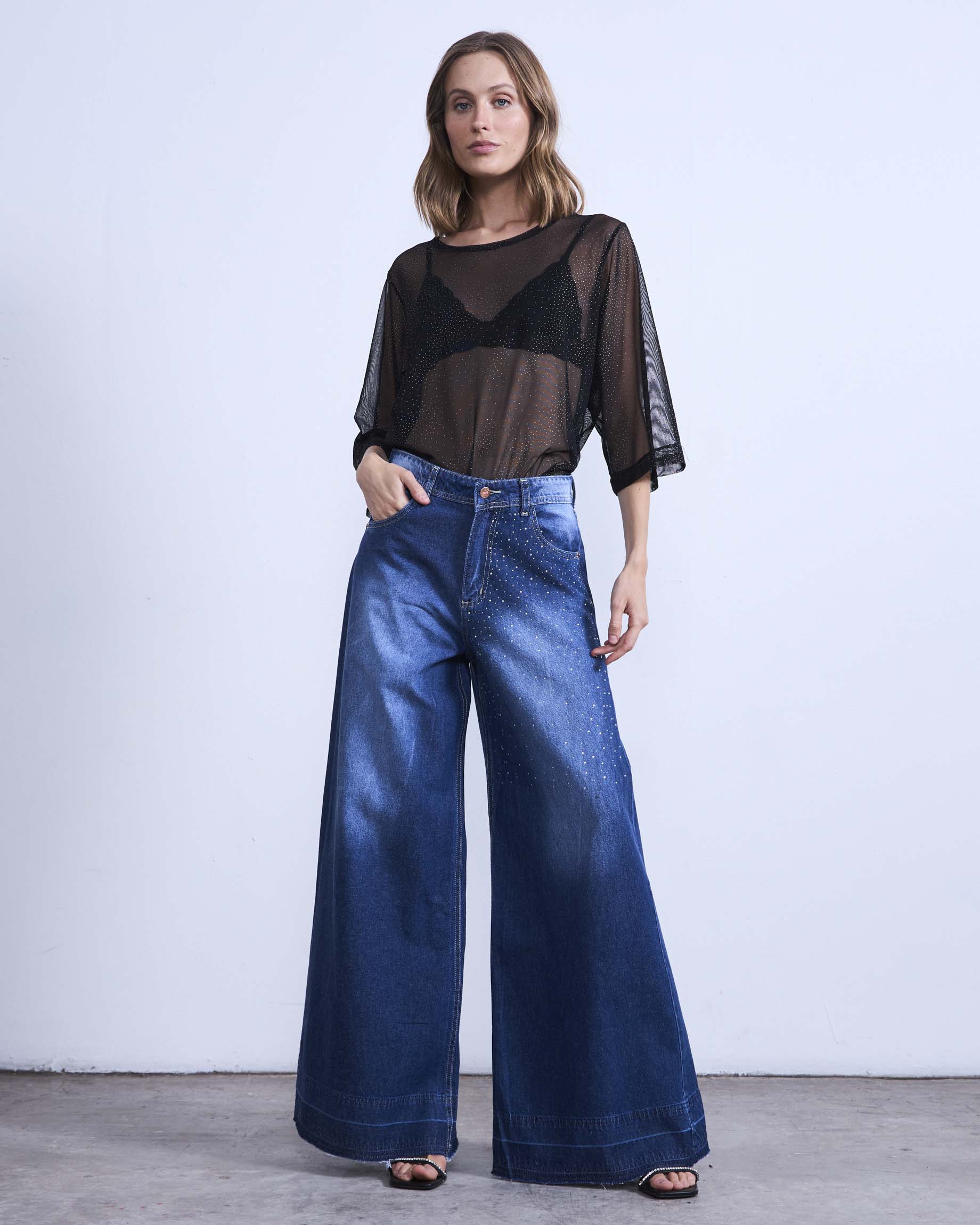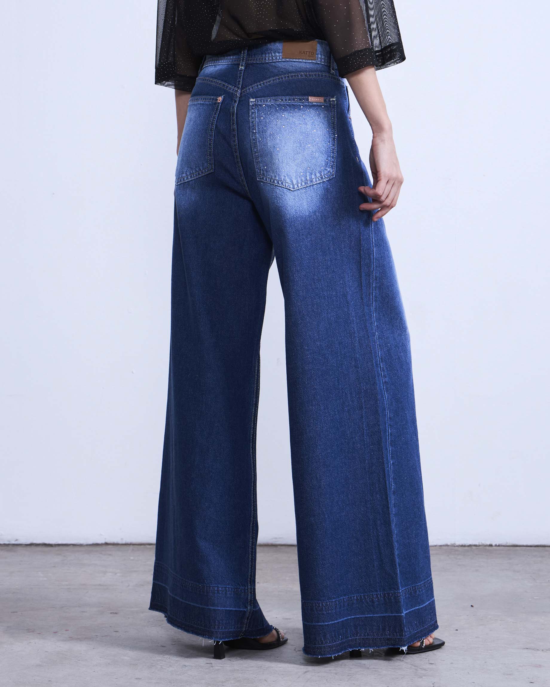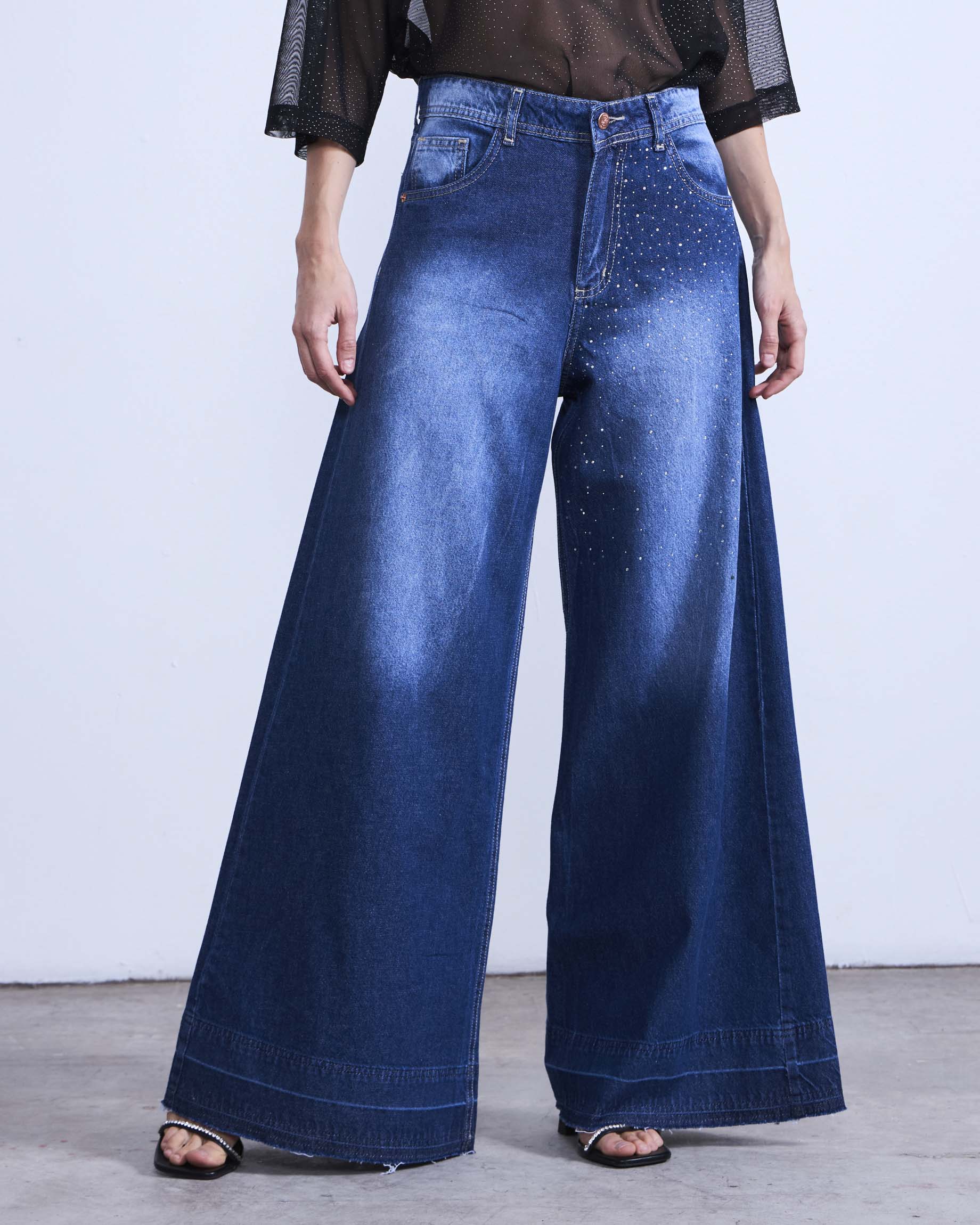 Jeans Palazzo CUARZO azul con brillos
