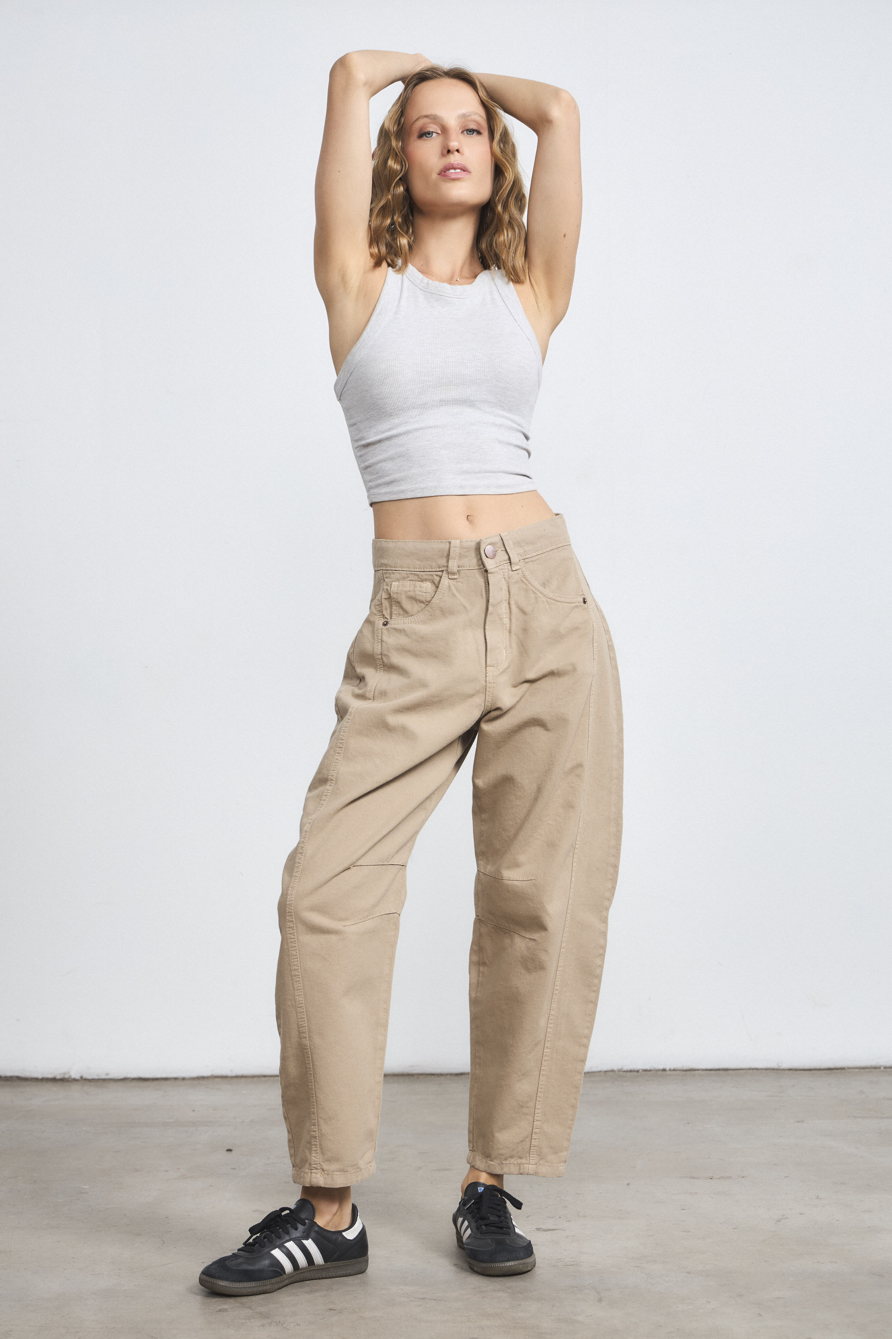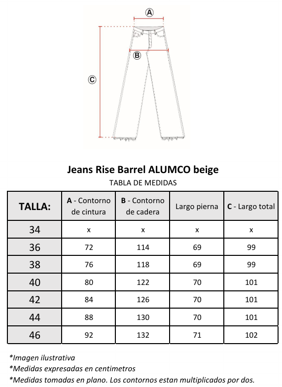 Jeans de largo regular, con el fit que es tendencia: Rise Barrel! Los Jeans Rise Barrel son de tiro medio/alto y marcan ligeramente la cintura, se ensanchan a partir de las caderas, alcanzando asi su anchura máxima a la altura de las rodillas, y luego se estrechan nuevamente a la altura del tobillo. Cierre frontal con cremallera y botón metálico. Este jeans tiene detalles de corazones en un tono mas oscuro.