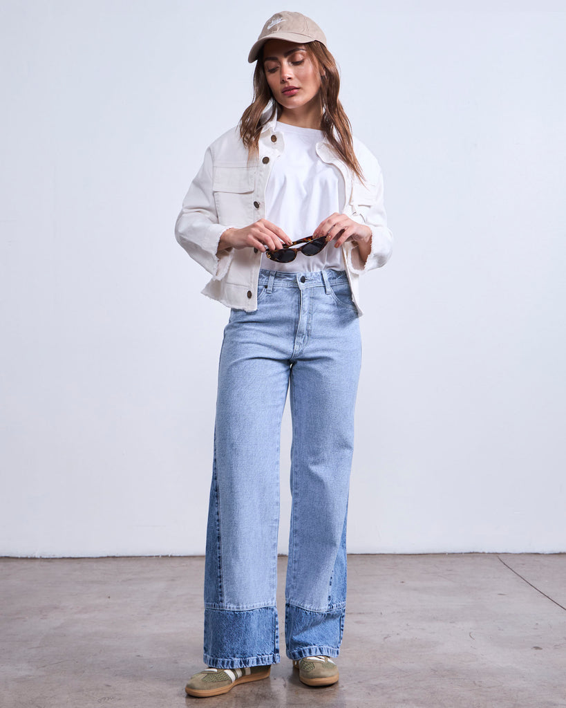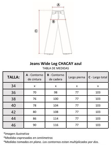El jeans Chacay es ese statement piece que transforma cualquier look. Con tiro alto y calce wide leg, combina comodidad y estilo en un diseño moderno y versátil. Su detalle distintivo está en la basta ancha en tono contrastado, que aporta un aire único y diferente sin perder la esencia clásica del denim.